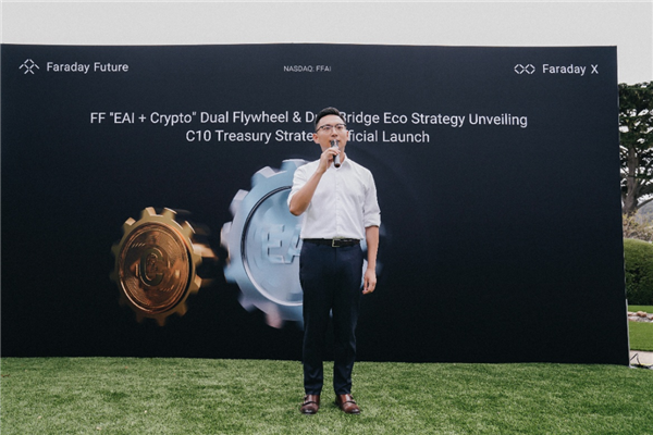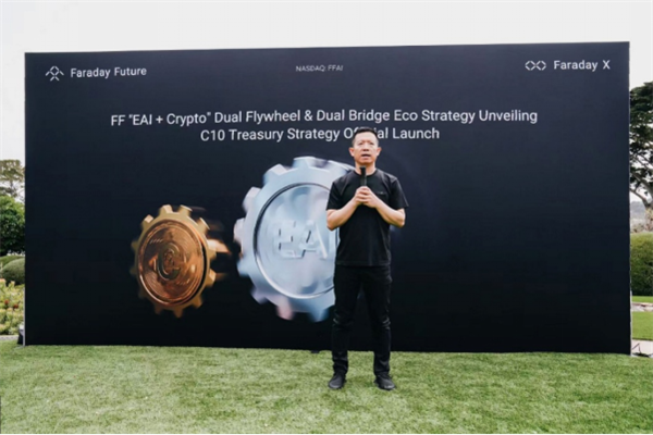美国加州圆石滩,法拉第未来(FF)创始人贾跃亭又开了场发布会,宣布了一项比造车更“超前”的计划“EAI+Crypto双飞轮战略”。