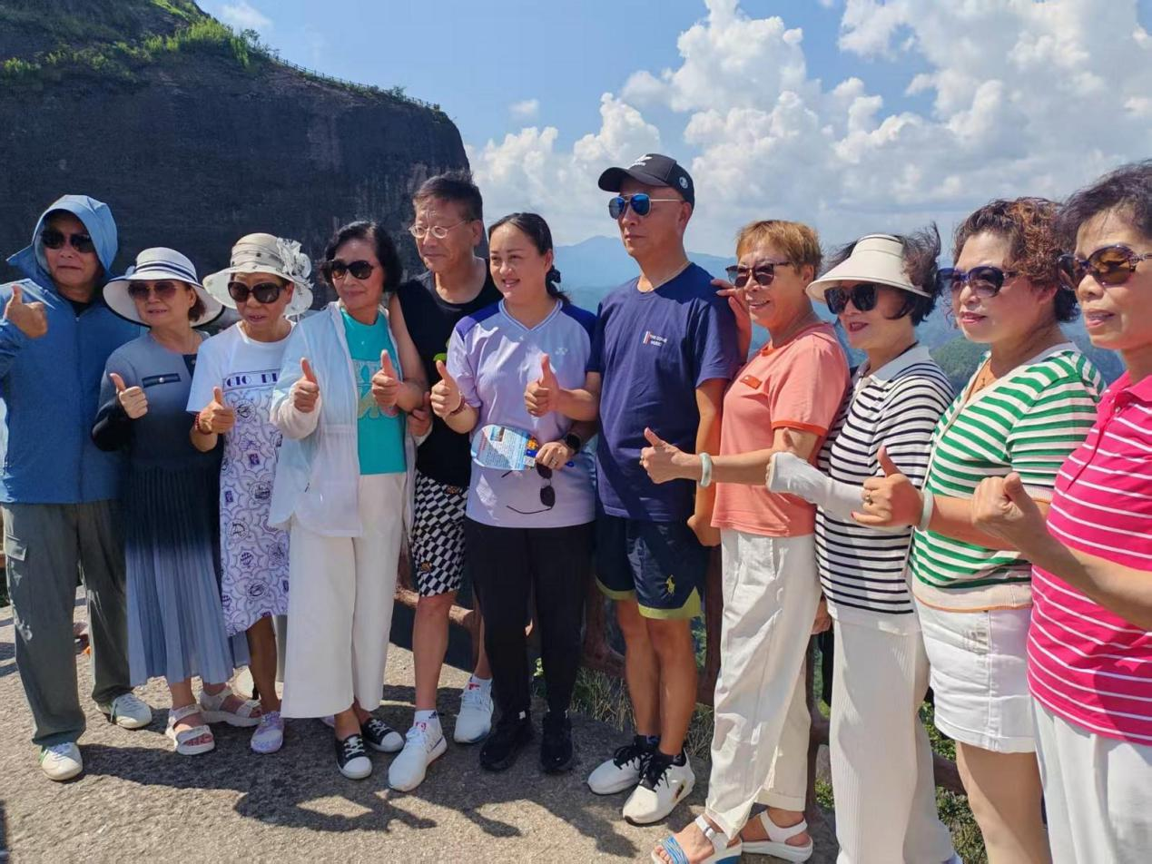 7月25日,龚智超、张楠走进美丽的崀山景区,来到八角寨、紫霞峒、何家湾、将军石等景点,乘坐全景式观光缆车,欣赏丹霞群峰争秀、鲸鱼闹海的壮丽景色,亲身感受沿夫夷江顺流而下、沉浸两岸奇山丽水、凉爽江风的独特体验。他们听讲解员细致讲解崀山的地质地貌、人文故事,与游客和羽毛球爱好者开心互动,拍照、赠送签名球拍和球衣。